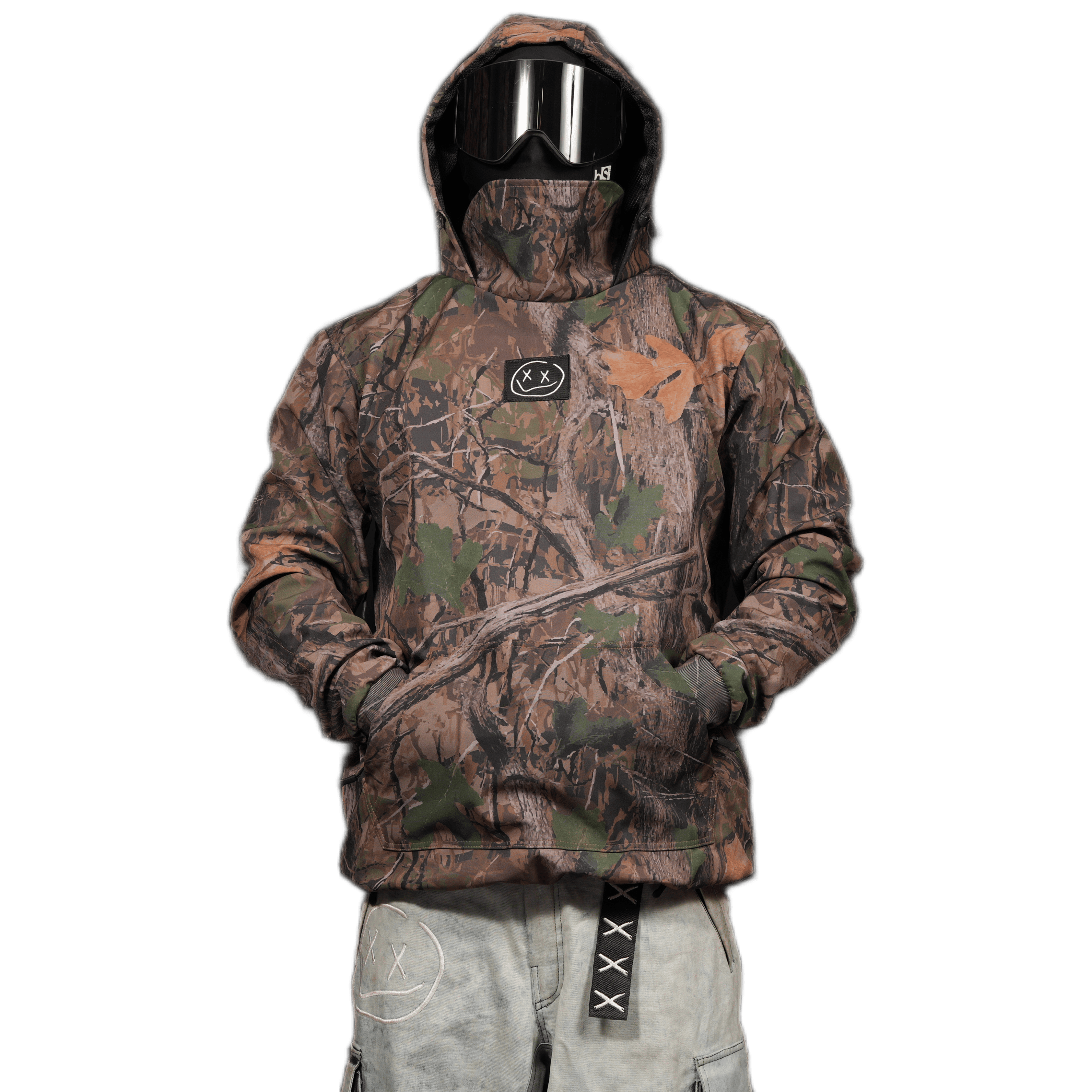 - Neck cover and drawstrings for skiing in tornados